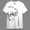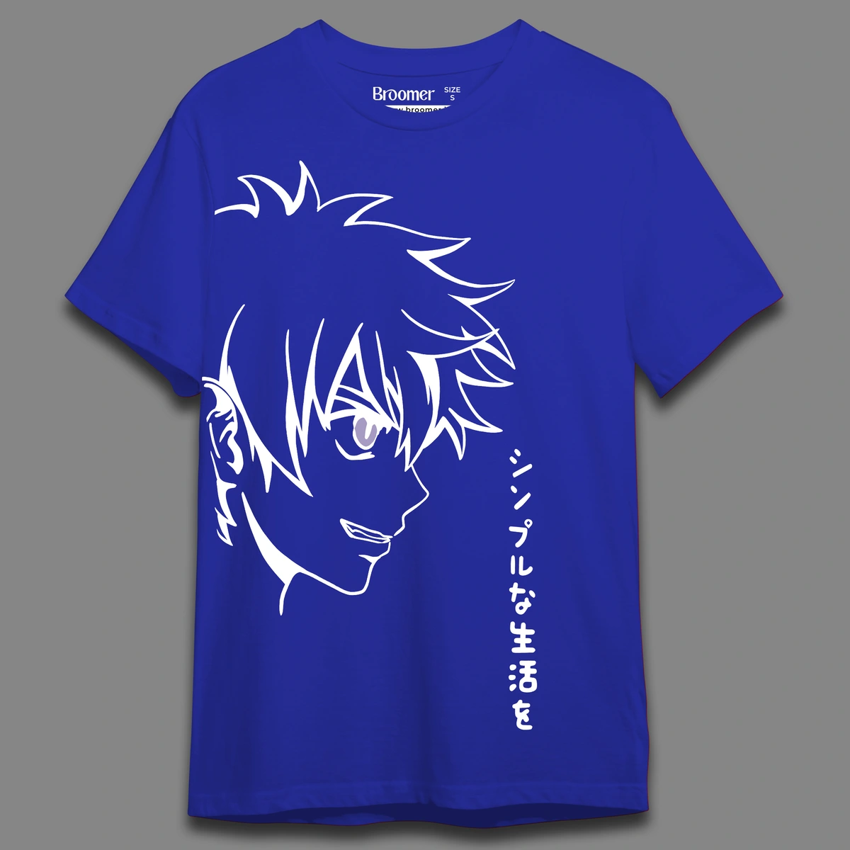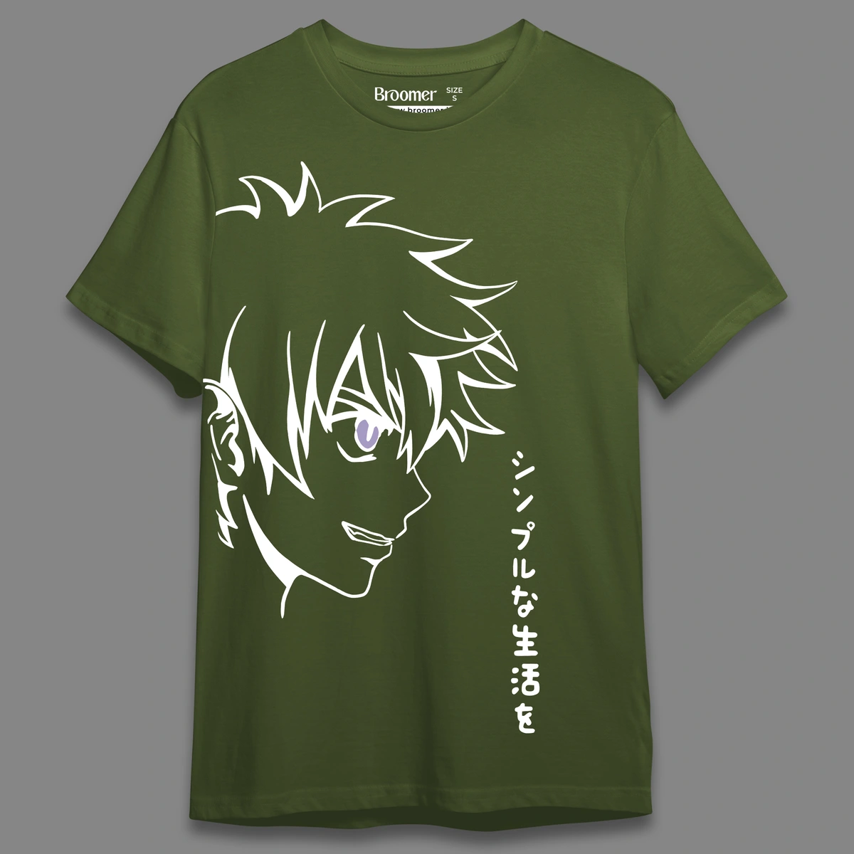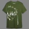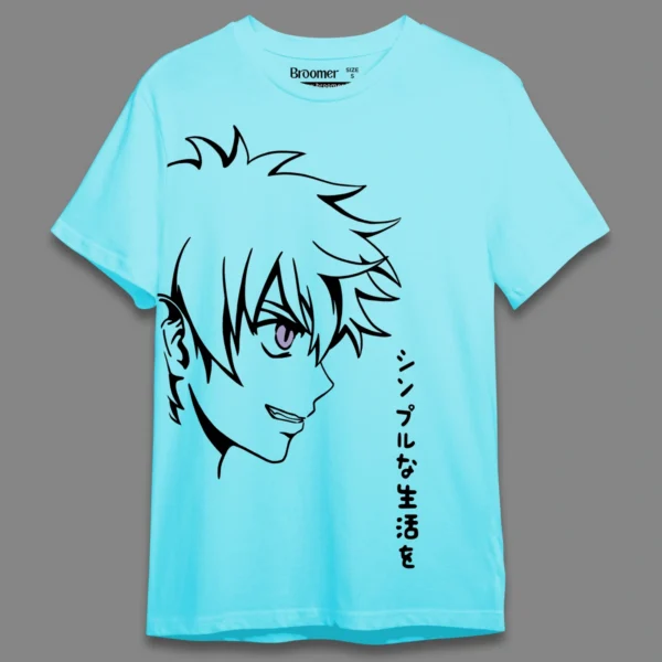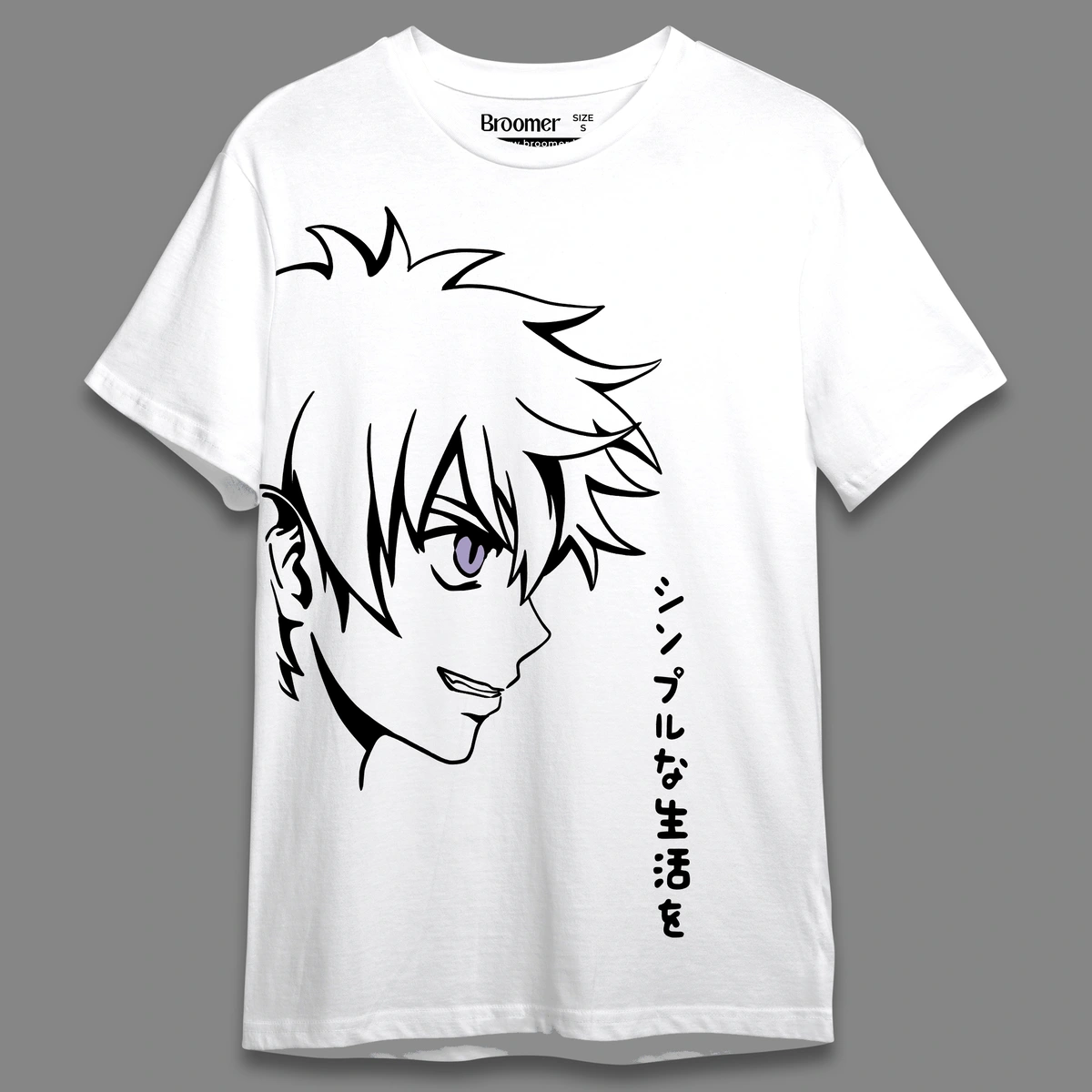 Anime Aesthetic T-Shirt: This tee features a minimalistic Japanese anime face paired with Japanese text that reads ‘Live Life Forever.’ Its clean design and inspirational message make it perfect for anime fans who love subtle, stylish expressions.