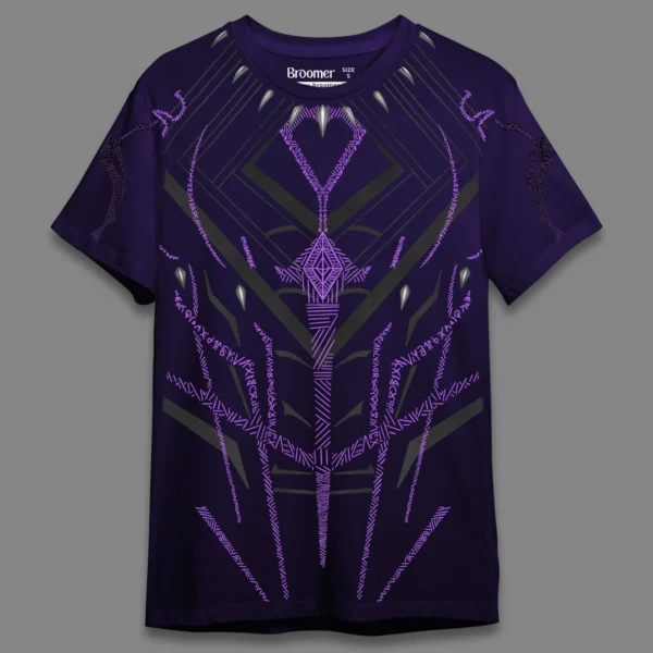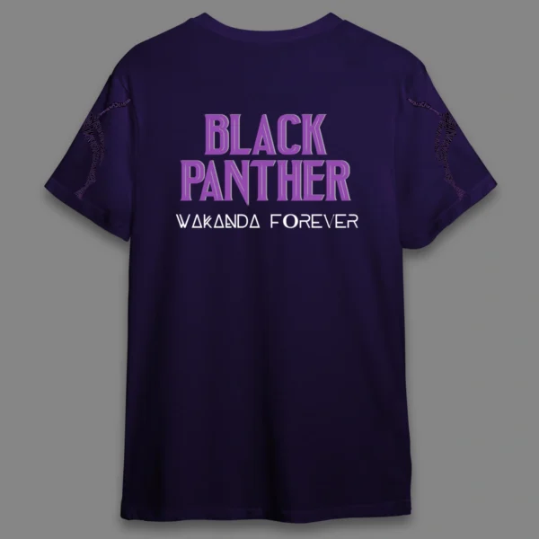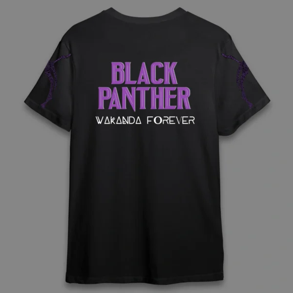 Black Panther Tribute T-Shirt: Inspired by the iconic Black Panther costume from Marvel, this tee captures the sleek, powerful look of Wakanda’s hero. With ‘Black Panther – Wakanda Forever’ printed on the back, it’s a must-have for fans who want to honor the legacy in style.