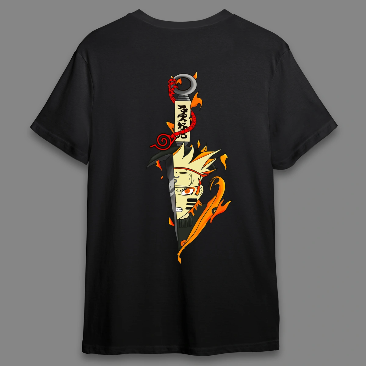 Embrace the spirit of a ninja with this striking Naruto Shippuden t-shirt! Featuring Naruto and his iconic kunai knife in an abstract, artistic design, this tee captures his courage and determination in a unique, edgy style that’s perfect for true fans of the series.