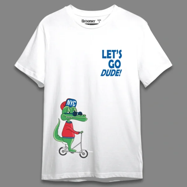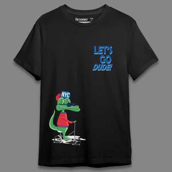 Bring the city vibes with this cool t-shirt featuring a green crocodile, personified as a laid-back, free-spirited New Yorker saying, ‘Let’s go, dude!’ Perfect for anyone who loves a fun twist on urban style, this tee is all about confidence and easygoing charm.