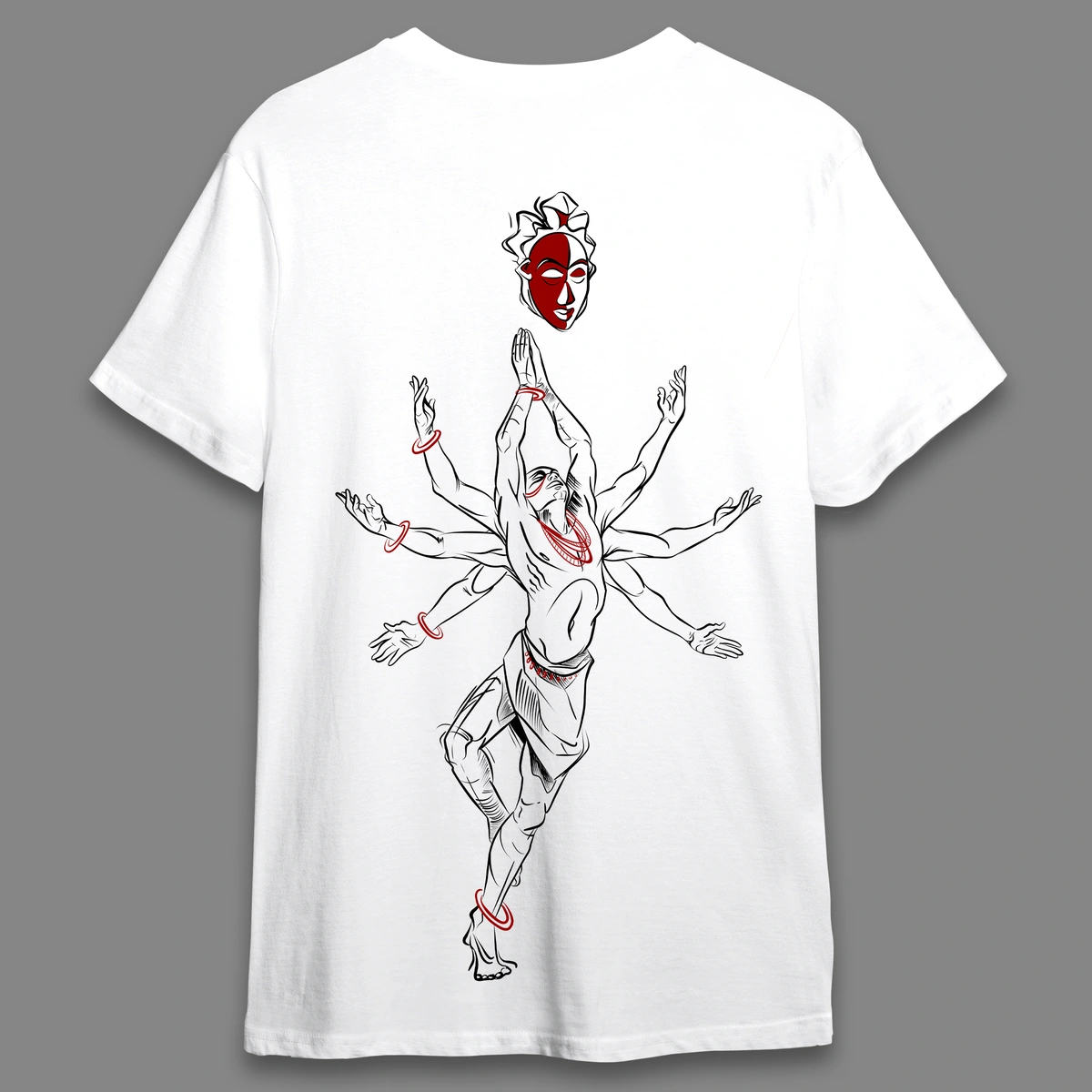 This t-shirt showcases a striking, contemporary sketch of Lord Shiva in the powerful Tandav posture. The design captures Shiva’s dynamic energy and divine grace blending traditional elements with a modern aesthetic. The intricate linework and minimalist details give it a bold yet refined look, perfect for those who admire art and spirituality in a unique, wearable form.
