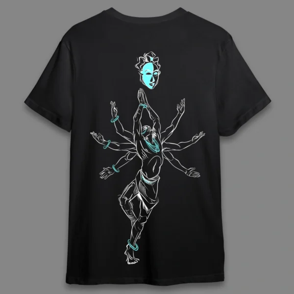 This t-shirt showcases a striking, contemporary sketch of Lord Shiva in the powerful Tandav posture. The design captures Shiva’s dynamic energy and divine grace blending traditional elements with a modern aesthetic. The intricate linework and minimalist details give it a bold yet refined look, perfect for those who admire art and spirituality in a unique, wearable form.