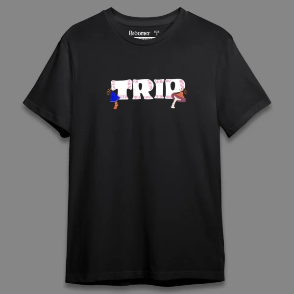 “Embrace the whimsical side with this fun t-shirt featuring a playful, toon-style design of mushrooms and the word *’Trip’* in bold! Perfect for free spirits and adventure-seekers, this tee adds a dash of quirky charm to any outfit.”